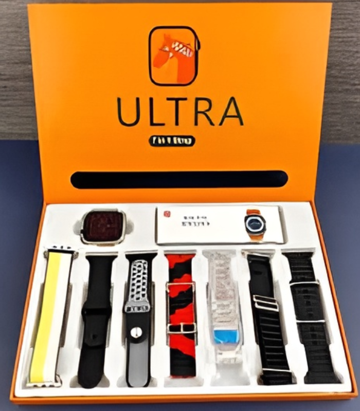 This extraordinary timepiece is not just a watch; it’s a comprehensive lifestyle companion designed to elevate your daily routine. With its futuristic design and a myriad of features, the 7in1 Ultra Smart Watch stands 7 Straps Watch out in the crowded market of smart wearables.