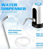 – Automatic water dispenser water pump wireless electric water pump auto suction pump- Energy saving water dispenser pump faster and easy to use- Hygienic and safe- Can be use at home indoor and outdoor- Easy to fix it and use it- 100% percent brand new imported productMake your life luxiourious smart rich and stylish