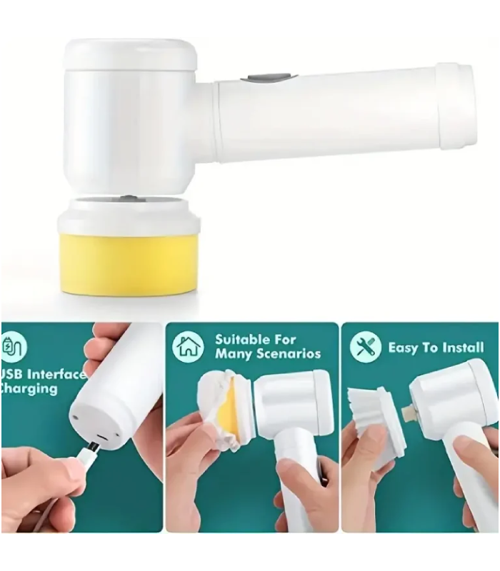 1set 5-in-1 Handheld Electric Cleaning Brush And   Suitable For Kitchen, Bathroom Tub, Shower Tile, Carpet Bidet, Cordless Spin Scrubber