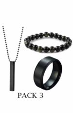 Be the first to review “Pack Of 3 Vertical Bar Boy’s Pendant, Ring And Bracelet Set, Color Black”
