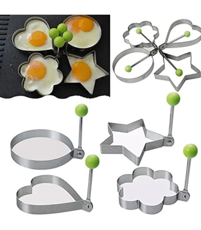 Pack Of 4 New Mould Style Fried Egg Pancake Shaper | Egg Shaper Kitchen Tools Star, Heart, Round, Flower Shaped Stainless Steel